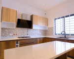 This modern 3-bedroom house in Baatsona Spintex boasts a sleek, contemporary kitchen with ample storage and high-end appliances. The spacious exterior features a well-lit driveway and stylish facade, perfect for evening relaxation or hosting guests. Conveniently located in a desirable neighborhood, this home combines luxury with practical living spaces.